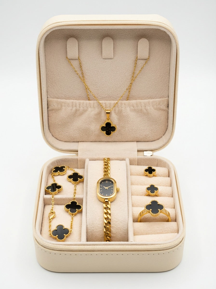This beautifully designed Luxury Jewellery Box is a complete style solution in one elegant package. It comes with perfectly matching jewellery pieces that add grace and charm to every look. Whether it’s a special occasion or everyday elegance, this box is crafted to make you shine with confidence. A timeless collection that blends beauty, comfort, and sophistication.